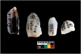 | Description / विवरण | Specimen of a fluted cores with several broad fluted marks indicating the detached blades from it. Some of them are tapering at one end. |