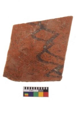 | Description / विवरण | Specimen of potsherd with decorative geometric painting. Type Black on Red Ware . |