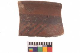 | Description / विवरण | Specimen of potsherd with black decorative geometric Linear painting, Type Black on Red Ware . |