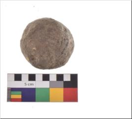 | Description / विवरण | Specimen of a sling ball with rough surface. |