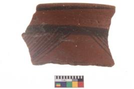 | Description / विवरण | Specimen of potsherd black on red painted pottery. It is fine fabric in sharp contrast with painted design are executed in black pigment. |