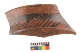 | Description / विवरण | Specimen of potsherd with black decorative geometric painting. |