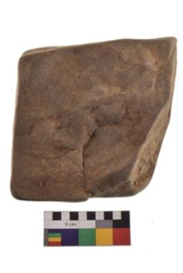 | Description / विवरण | Specimen of an uneven hammerstone with battered periphery along with the circumference. |