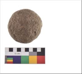 | Description / विवरण | Specimen of a sling ball with rough surface. |