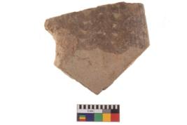 | Description / विवरण | Specimen of potsherd with decorative geometric painting. Type Black on Red Ware . |