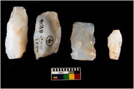 | Description / विवरण | Specimen of a fluted cores with several broad fluted marks indicating the detached blades from it. Some of them are tapering at one end. |