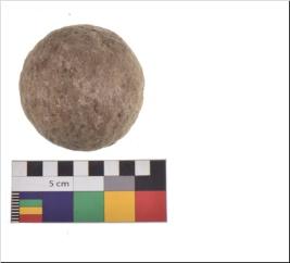 | Description / विवरण | Specimen of a sling ball with rough surface. |