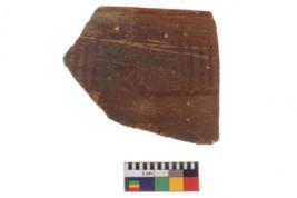| Description / विवरण | Specimen of potsherd with decorative geometric painting. Type Black on Red Ware . |