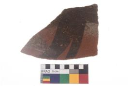 | Description / विवरण | Specimen of potsherd black on red painted pottery. It is fine fabric in sharp contrast with painted design are executed in black pigment. |
