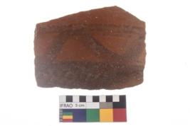 | Description / विवरण | Specimen of potsherd black on red painted pottery. It is fine fabric in sharp contrast with painted design are executed in black pigment. |