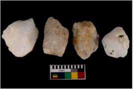 | Description / विवरण | Specimen of a cores with several broad fluted marks. Some of them have sharp edges. |