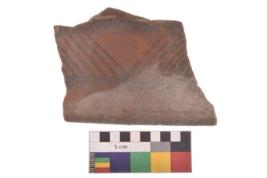 | Description / विवरण | Specimen of black on red ware with black decorative Parallel cross lines geometric painting. |
