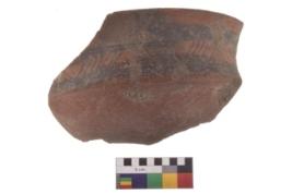 | Description / विवरण | Specimen of black on red ware with black decorative Parallel lines geometric painting. |