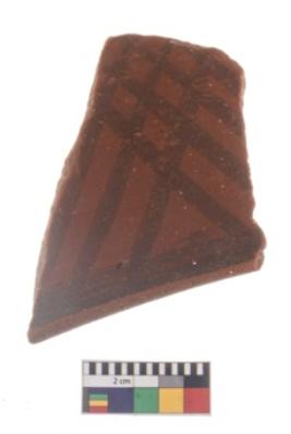 | Description / विवरण | Specimen of potsherd black on red painted pottery. It is fine fabric in sharp contrast with painted design are executed in black pigment. |