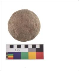 | Description / विवरण | Specimen of a sling ball with rough surface. |