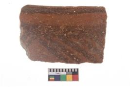 | Description / विवरण | Specimen of potsherd black on red painted pottery. It is fine fabric in sharp contrast with painted design are executed in black pigment. |