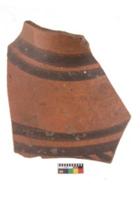 | Description / विवरण | Specimen of potsherd with black decorative geometric painting. |