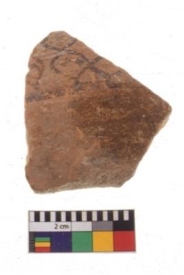 | Description / विवरण | Specimen of potsherd with decorative geometric painting. Type Black on Red Ware . |