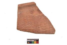 | Description / विवरण | Specimen of red on red ware with decorative geometric Horizontal latticed bands painting. |