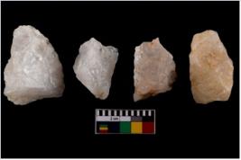 | Description / विवरण | Specimen of a cores with several broad fluted marks. Some of them have sharp edges. |