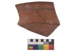 | Description / विवरण | Specimen of black on red ware with black decorative Parallel lines geometric painting. |