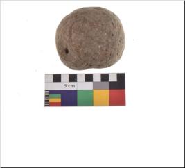 | Description / विवरण | Specimen of a sling ball with rough surface. |