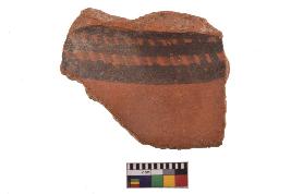 | Description / विवरण | Specimen of black on red ware with decorative geometric A double row of arches over a horizontal band painting. |
