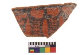 | Description / विवरण | Specimen of potsherd with decorative geometric painting. Type Black on Red Ware . |