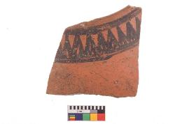 | Description / विवरण | Specimen of potsherd with black decorative geometric Set of two zigzag bands painting, Type Black on Red Ware . |