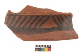 | Description / विवरण | Specimen of potsherd with black decorative geometric painting. |
