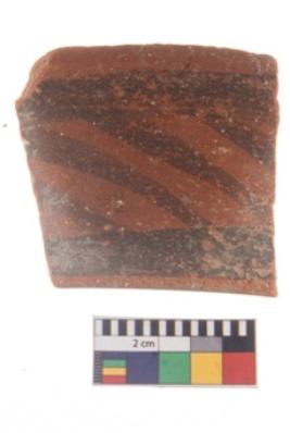 | Description / विवरण | Specimen of potsherd with black decorative geometric painting . |