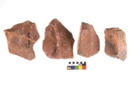 | Description / विवरण | Specimen of flake tool with prominent flaking marks. They are made up of a short flakes with sides trimmed and rectangular in shape. |