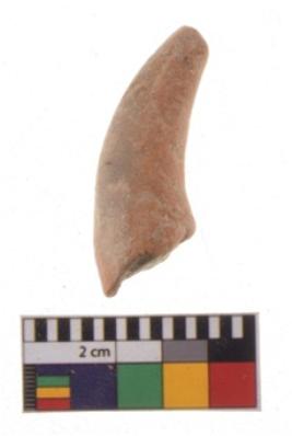 | Description / विवरण | A fragment of an handmade horn of a bull figurine made with fine clay. It is red ware, well fired and smooth in texture. |