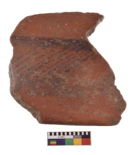 | Description / विवरण | Specimen of black on red ware with decorative geometric Outcurved lines painting. |