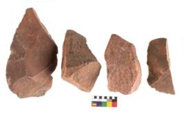 | Description / विवरण | Specimen of flake tool with prominent flaking marks. They are made up of a short flakes with sides trimmed. |