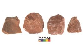 | Description / विवरण | Specimen of flake tool with prominent flaking marks. They are made up of a short flakes with sides trimmed. |