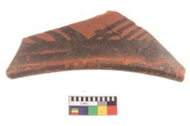 | Description / विवरण | Specimen of potsherd with black decorative geometric painting. |