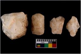 | Description / विवरण | Specimen of a cores with several broad fluted marks. Some of them have sharp edges. |
