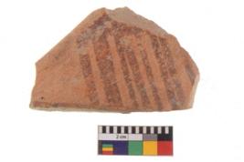 | Description / विवरण | Specimen of potsherd with decorative geometric painting. Type Black on Red Ware . |