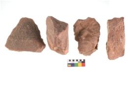| Description / विवरण | Specimen of flake tool with prominent flaking marks. They are made up of a short flakes with sides trimmed. |