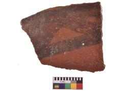 | Description / विवरण | Specimen of black on red ware with decorative geometric Wave pattern net motif painting. |