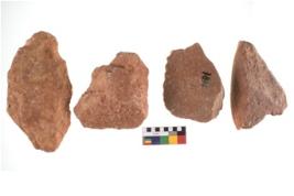 | Description / विवरण | Specimen of flake tool with prominent flaking marks. They are made up of a short flakes with sides trimmed. |
