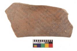 | Description / विवरण | Specimen of potsherd with decorative geometric painting. Type Black on Red Ware . |