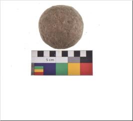| Description / विवरण | Specimen of a sling ball with rough surface. |