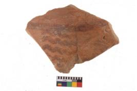 | Description / विवरण | Specimen of potsherd with decorative geometric painting. Type Black on Red Ware . |