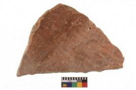 | Description / विवरण | Specimen of potsherd with decorative geometric painting. Type Black on Red Ware . |
