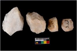 | Description / विवरण | Specimen of a cores with several broad fluted marks. Some of them have sharp edges. |