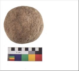 | Description / विवरण | Specimen of a sling ball with rough surface. |