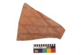 | Description / विवरण | Specimen of potsherd with decorative geometric painting. Type Black on Red Ware . |
