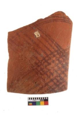 | Description / विवरण | Specimen of potsherd with decorative geometric painting. Type Black on Red Ware . |